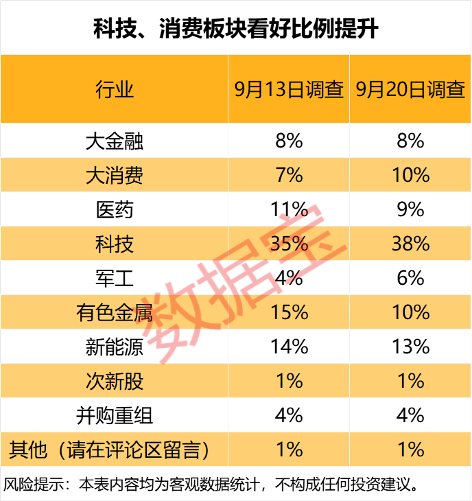 科技、大消费板块看好比例提升