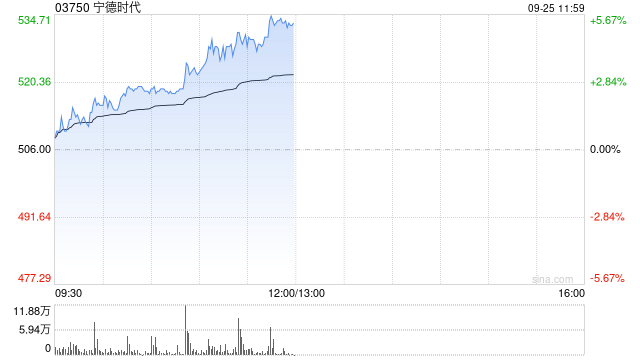 港股锂电池股持续拉升 宁