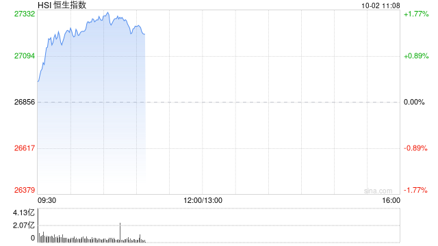 港股三大指数涨幅近一步