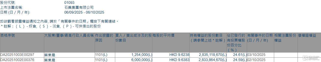 石药集团(01093.HK)获执行董