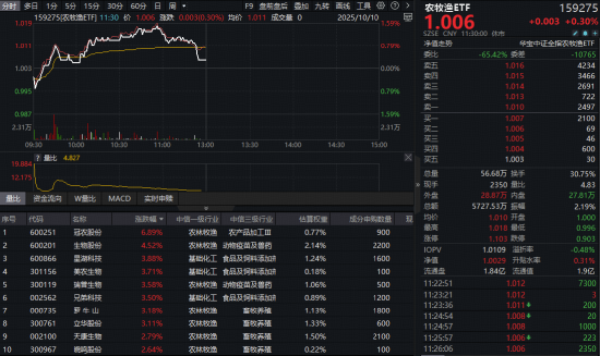 今日(10月10日)市场盘整,揽尽有色金属行业龙头的有色龙头ETF(159876)随市回调,场内价格现跌3.55%,实时成交额1.42亿元,交投火热!